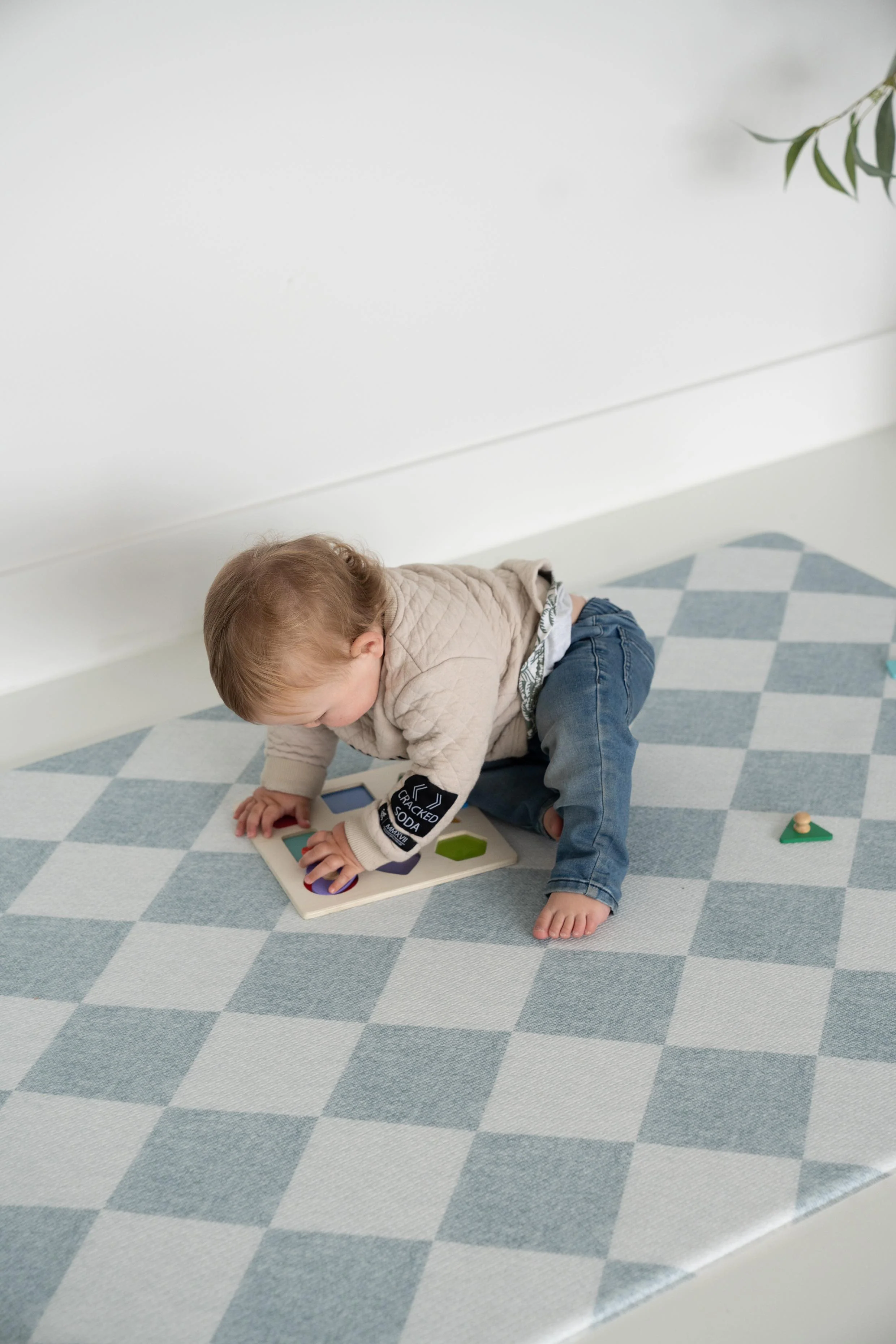 Expertly designed for hours of fun, the Checkmate Denim playmat in small offers a comfortable padded surface and a striking blue checkered print. With a track on the reverse side, this playmat provides endless opportunities for imaginative and strategic play. Perfect for children and adults alike, this playmat is a must-have for any nursery or shared playspace.